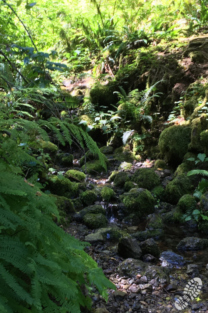 The trailhead for this hike is right off of Hwy 101, and there is PLENTY of parking. If you happen to camp in the Humbug Mountain State Park campground across the street, you can actually meander to the trailhead within the campground–there is a bridge across the stream as you’re heading into loop 28-95. After crossing the bridge, go through the tunnel and pop up on the other side of the highway, right at the start of the trail.