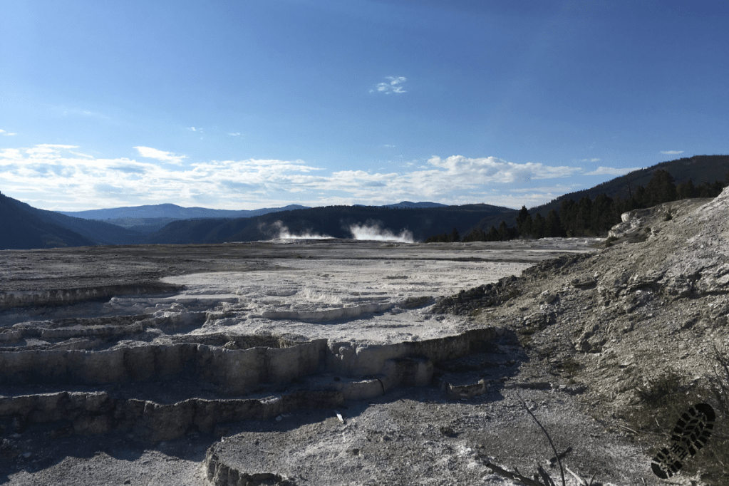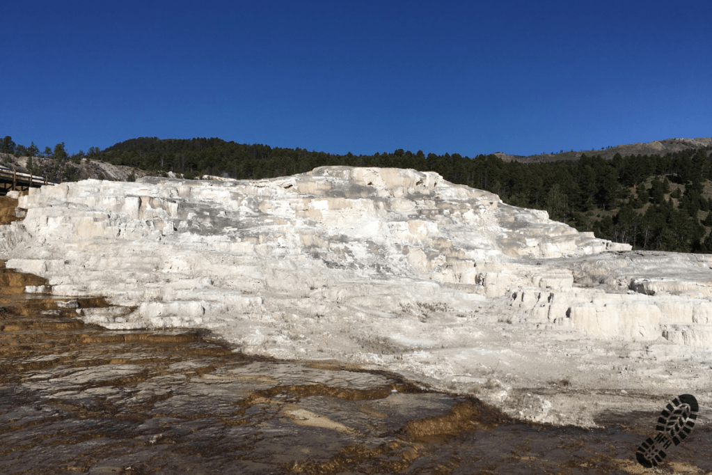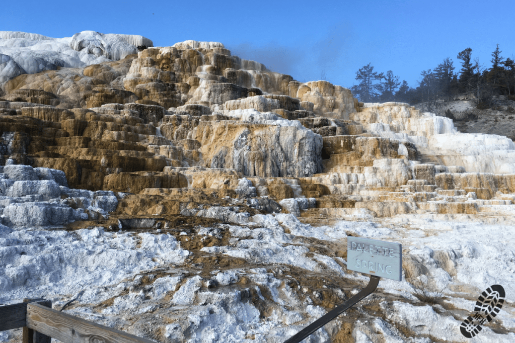 The colorful terraces of Mammoth Hot Springs welcomed us to the park three days in a row–talk about an entrance! Finally, on the third day, we were able to stop off and explore around.