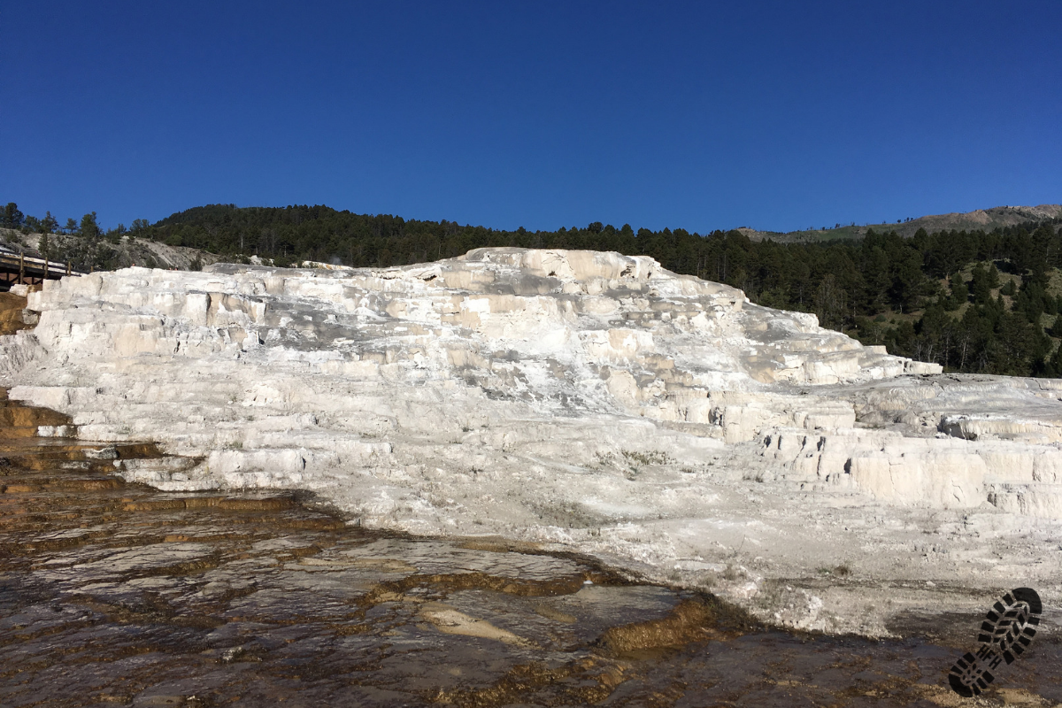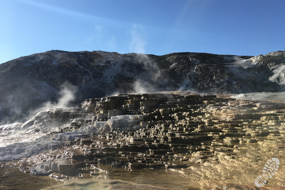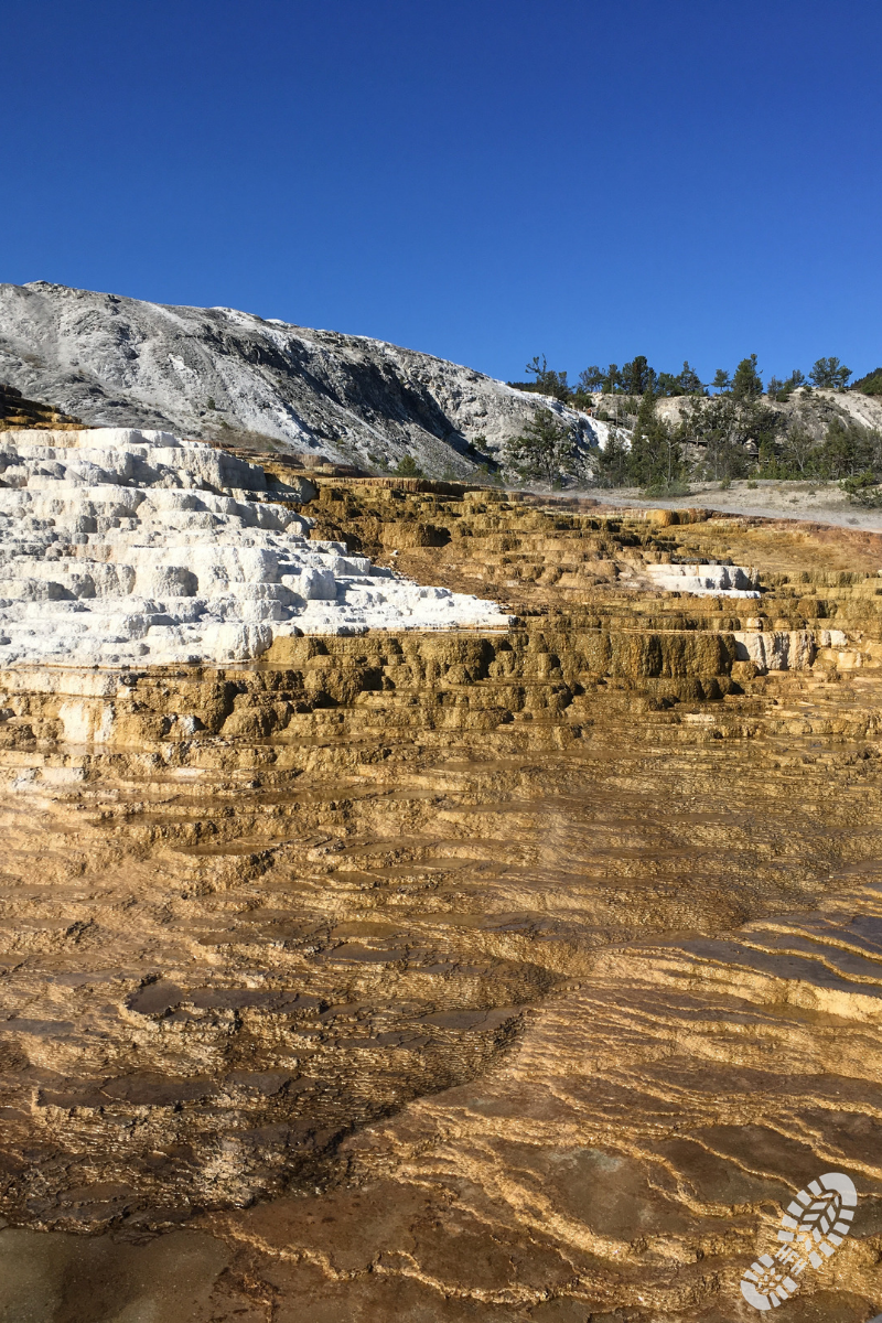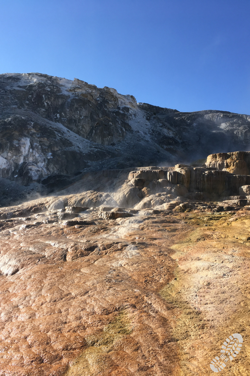 After passing the terraces twice a day for a few days, we knew we had to make time to explore this wonder, and we are SOOO glad we did! There are tons of boardwalks to keep you and the springs safe, with spots of stairs here and there to take you up to the Main Terrace. We’d recommend going on a clear morning (if you can swing it). Bonus: Fort Yellowstone is nearby, which is a fun area to walk around!