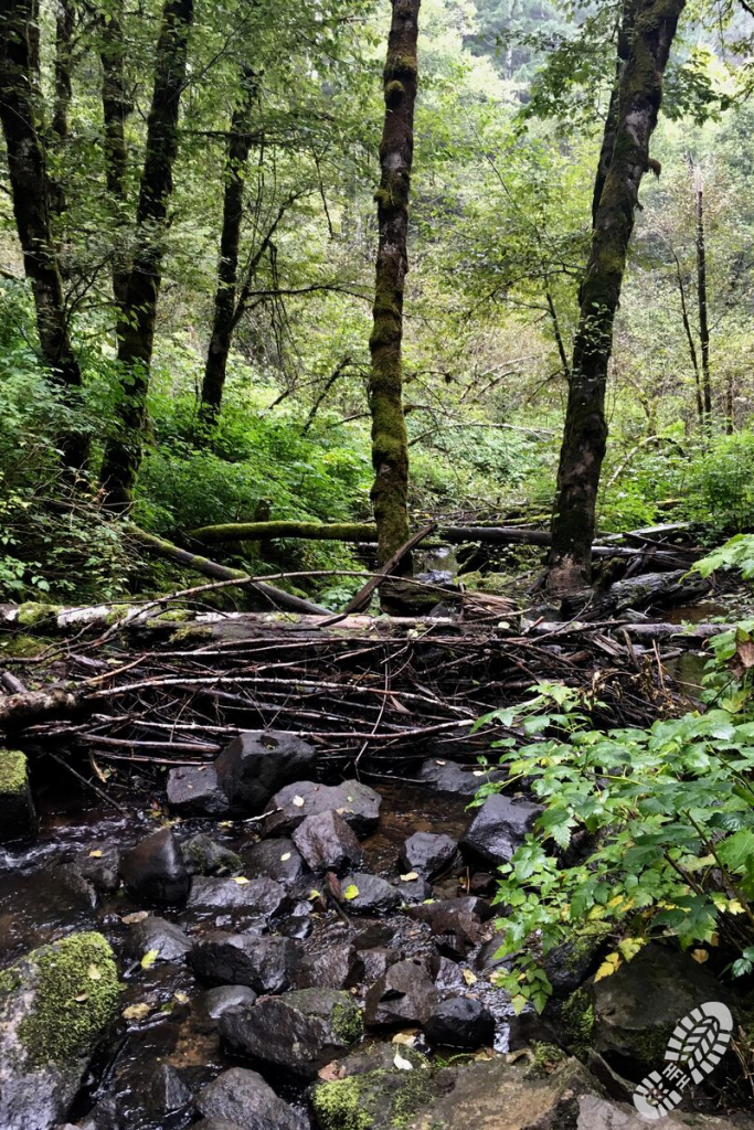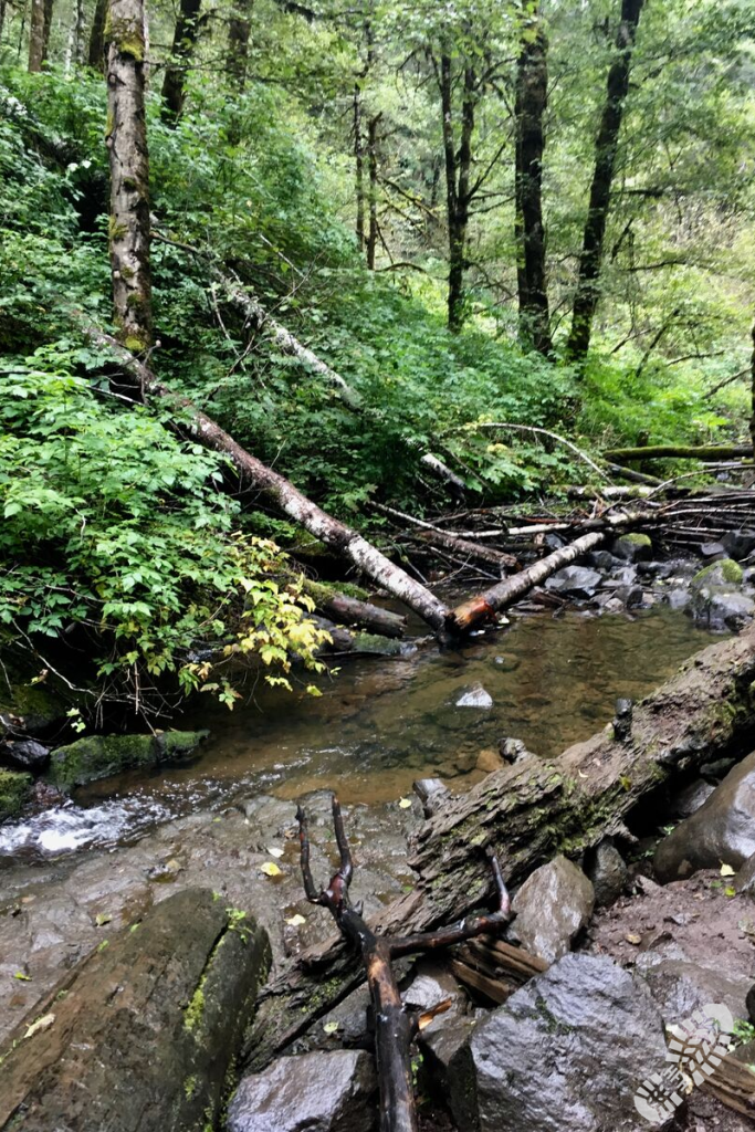From our nook of the Portland Metro Area, it was a 45-minute drive out to the turn-off for the Rogers Camp trailhead, and from there about 10 minutes to the University Falls trailhead. There appears to be plenty of parking all around, but I can imagine it gets a little full during the nice, summer weather. The terrain was fairly gentle, although a bit slippery in the rain (but honestly, not that bad).
