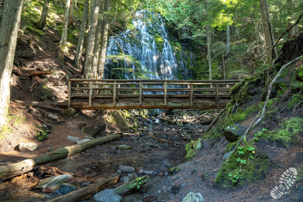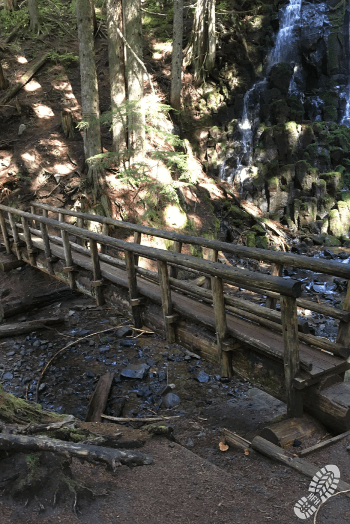 There is a lovely bridge that takes you across the falls and onto the return loop of the hike. Full disclosure: the return trail is one of my favorites ever. The trail grade is gentle and you’re met with a gorgeous green carpet of moss next to the creek. As you cross the creek a handful of times on wide, flattened logs (with a handrail on one side), you can feel a little like you’re in a wooded version of The Shire–yes, from the Lord of the Rings. It’s pure magic back there.
