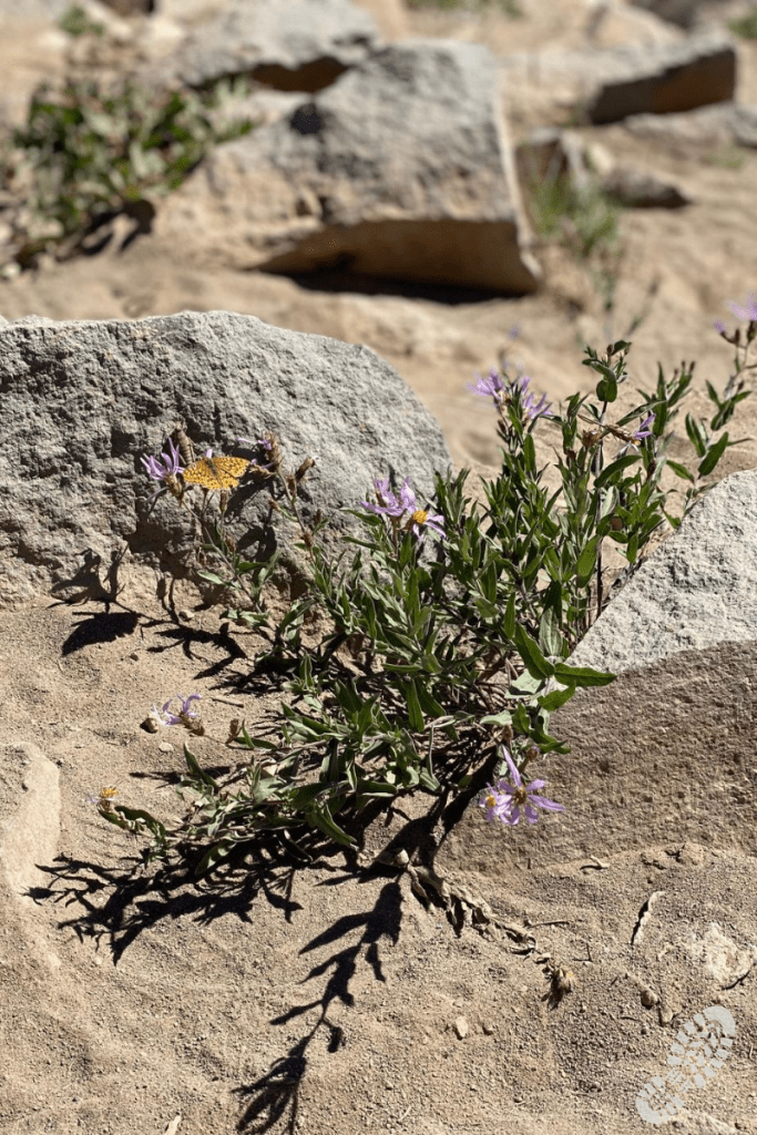 At the top of the trail, there were also an incredible amount of butterflies and buzzing insects (but not a lot of trees for shade). We started to hike down to find a little bit of shade and have a snack.